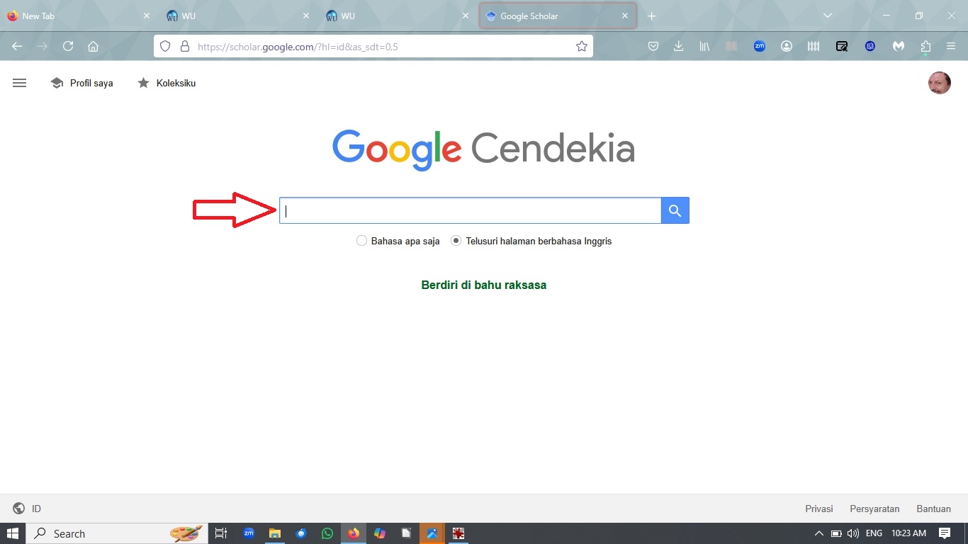 Pertama, buka Google Cendikia (https://scholar.google.co.id/). Beginilah layar Google Cendikia: